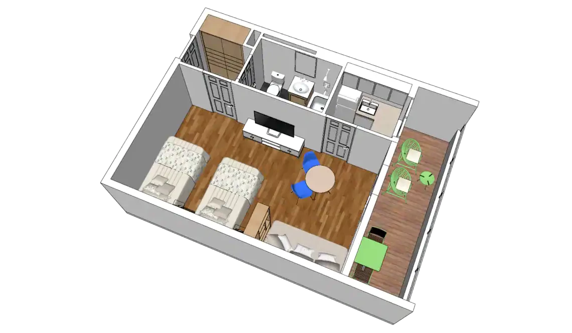 – This apartment can be well inhabited with 3 adults or for families of 3-4 people with children.